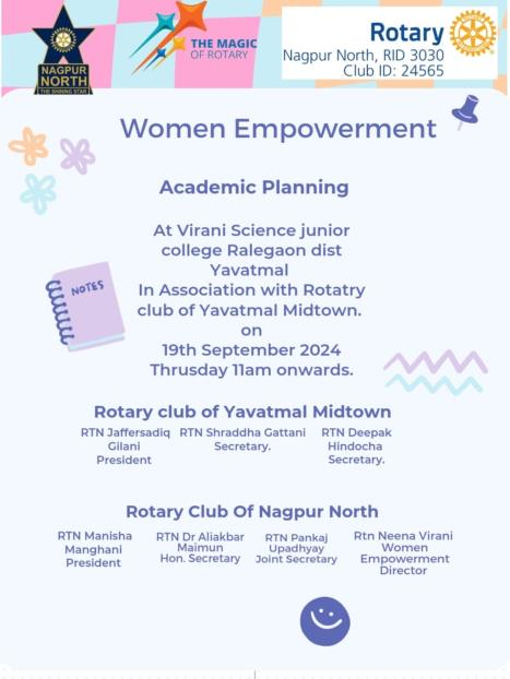- Rotary Club of Nagpur North Women Empowerment in association with Rotary club of Yavatmal Midtown conducted a session on “Academic Planning” at Virani Science Junior College Ralegaon district Yavatmal.