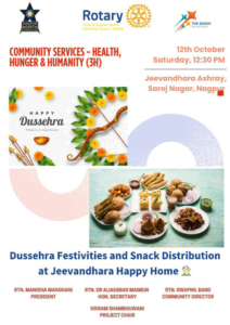 • President Rtn. Manisha Manghani shares her thoughts “Thank you so much @Rtn.Vikram Shambwani and family and all others who today celebrated the festival of Dussehra with inmates of Jeevan Dara .