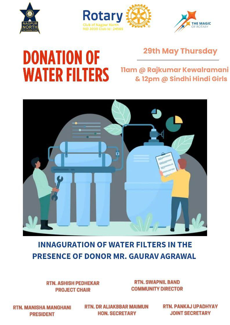 - Under the leadership of Community Director Rtn Swapnil Band, we arranged the installation of water filtration plants at Sindhi Hindi Girls High School (1200+ students) and Rajkumar Kewalramani School (800+ students).