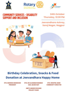 - On 24th October, 2024, we celebrated Rotakid Shaurya Khilnani’s birthday at Jeevandhara Happy Home, filled with love, kindness, and generosity.