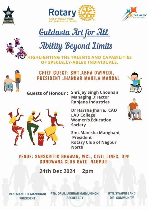 - he Rotary Club of Nagpur North was proud to partner with the “Guldasta Art for All” event, showcasing the talents of the especially abled performers.